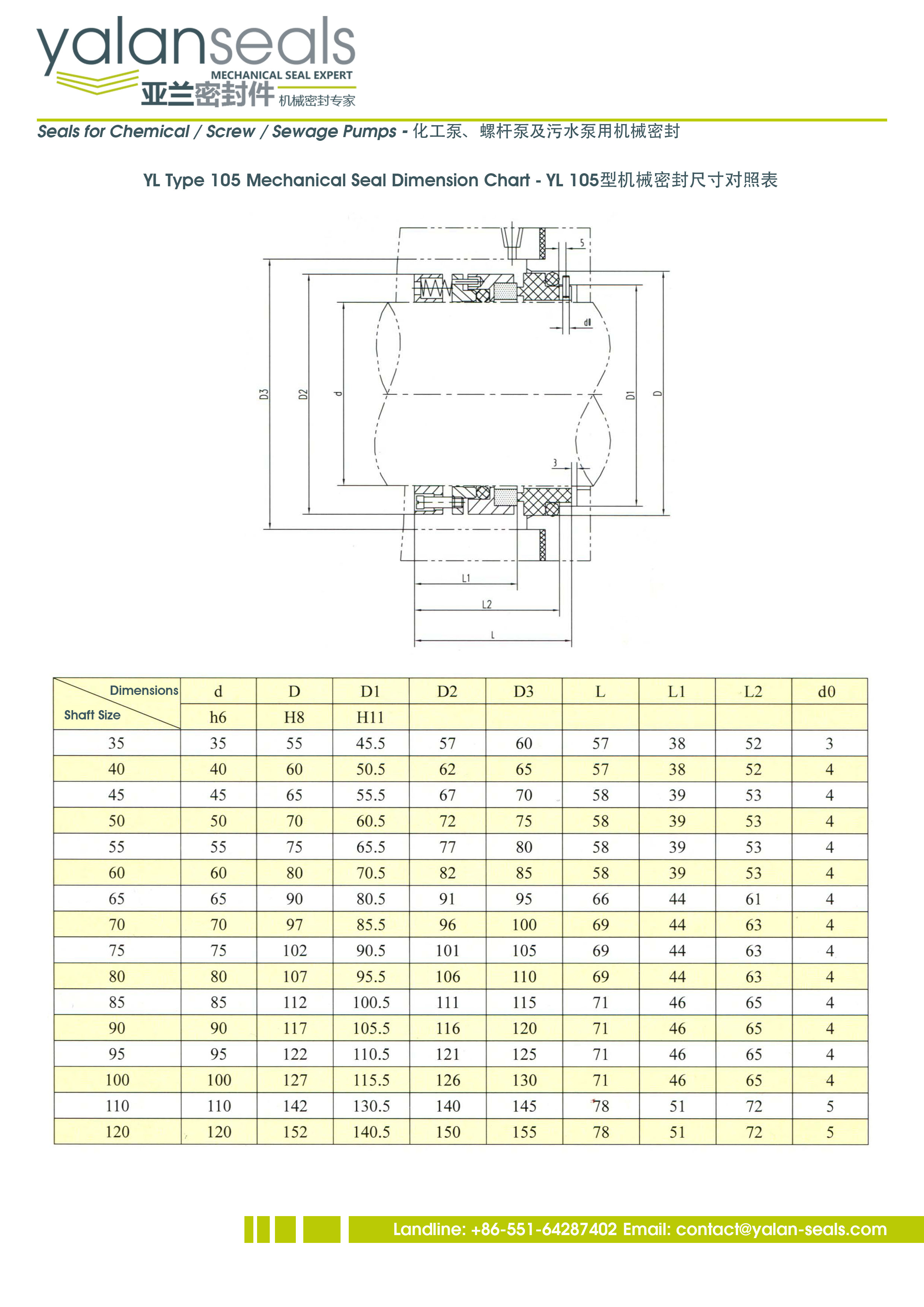 亞蘭105型機械密封件,用于化工離心泵、螺桿泵和污水泵。