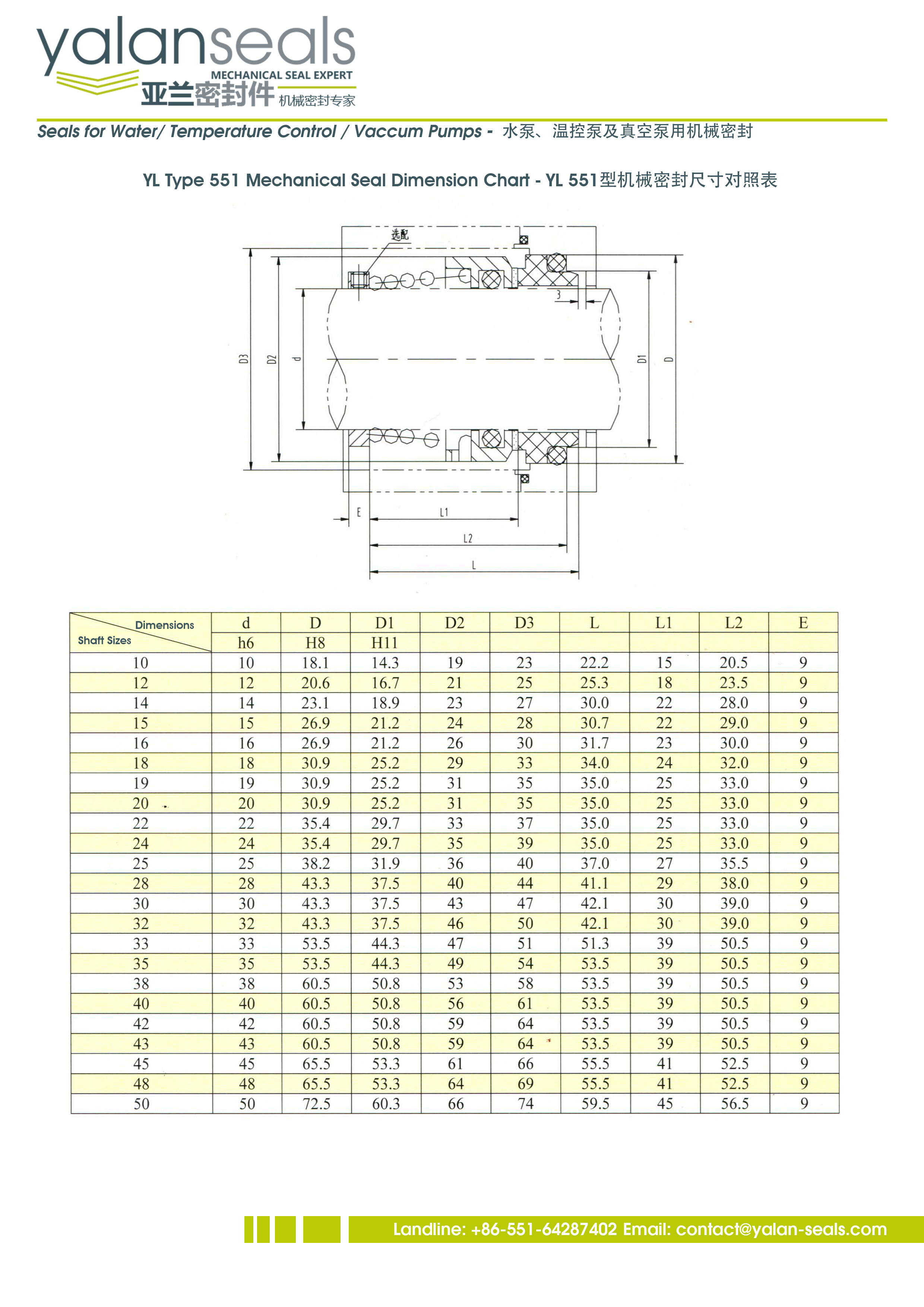 亞蘭551型錐形彈簧機械密封件,用于水泵、溫控泵、真空泵、熱交換油泵等設備。